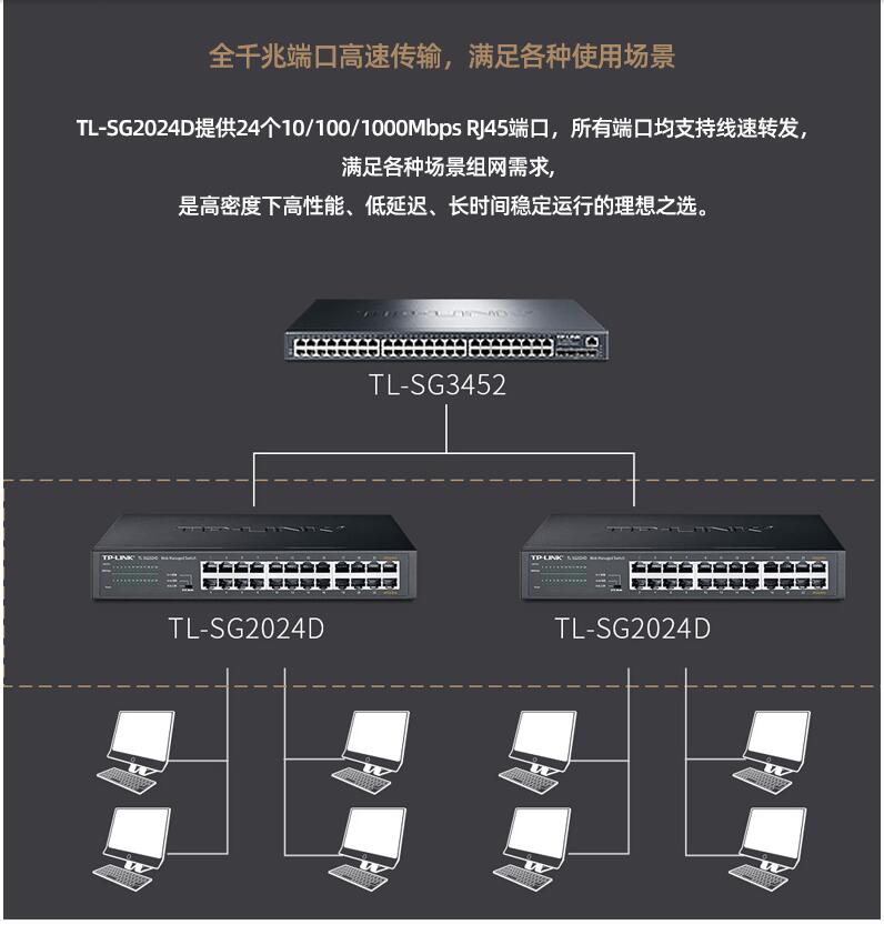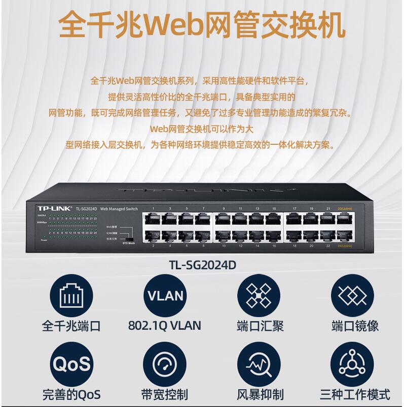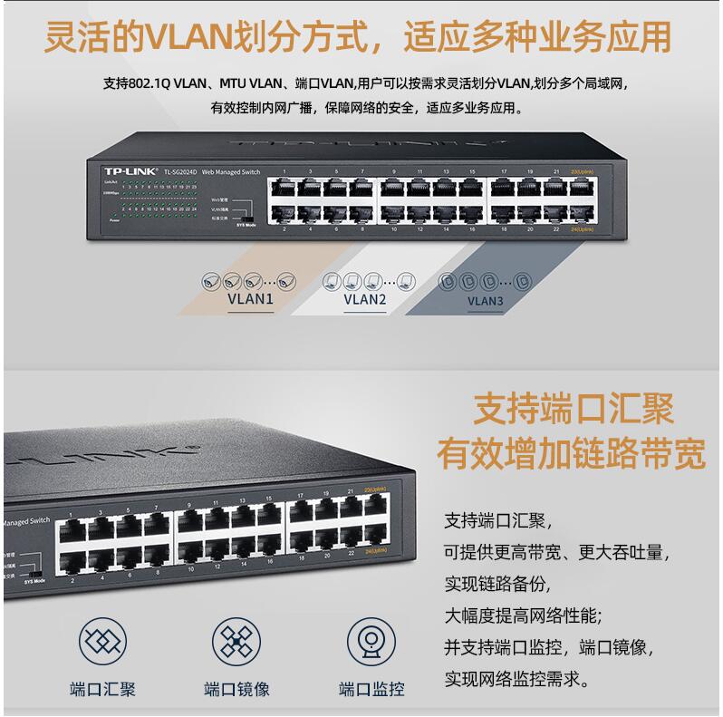 tplink24口千兆交換機16口48口百兆監(jiān)控專用網(wǎng)絡(luò)無線網(wǎng)線分流轉(zhuǎn)換交換器以太網(wǎng)企業(yè)web網(wǎng)管級VLAN匯聚SG2024D